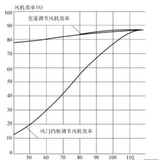 圖1離心風(fēng)機(jī)不同調(diào)節(jié)方式耗電特性比較