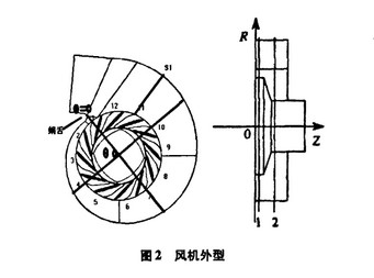 以離心風 機作為研究對象, 利用 DES公司的三維造型軟件 UG。風機原始設 計參數(shù)為: 轉速 n = 2900r /m in。葉輪主要幾何參數(shù)為 : 葉輪葉片進口直徑 D1 = 318172 mm, 葉片出口直徑 D2 = 480 mm, 葉片 進口高 度 b1 = 144mm, 葉 片出口高度 b2 = 96 mm, 葉輪進口直徑 D0 = 3071 2 mm, 出口葉片角B2 = 50b 葉片數(shù) Z = 12 葉輪 采用 直葉 片。蝸殼 寬度 B =264 mm, 采用矩形斷面, 外型線為對數(shù) 螺線。