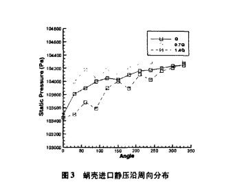 1)葉輪出口流動對蝸殼內(nèi)的流動影響 較大, 而 蝸殼的不對稱結構對葉 輪出口流動的反作用亦不能忽視。