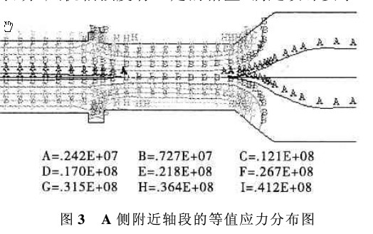 圖 3 A 側(cè)附近軸段的等值應力分布圖