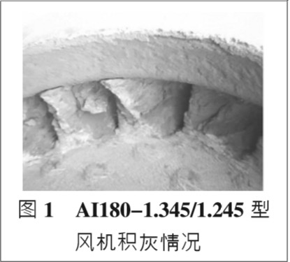 濟(jì)鋼擁有離心風(fēng)機(jī) 百余臺,分布在不同的生 產(chǎn)環(huán)節(jié),以轉(zhuǎn)爐煤氣加壓 設(shè) 備 AI180 -1.345/1.245 風(fēng)機(jī)為例, 6 臺風(fēng)機(jī)平均 實際效率在 50%左右,與 設(shè)計效率差距較大。通過 設(shè)備檢修時對葉片積灰 詳細(xì)觀察和分析,可以確認(rèn)葉輪風(fēng)道積灰是效率低的主 要原因,如圖 1 所示。由風(fēng)道積灰情況可以看出,葉片積 灰由壓力面向吸力面延伸和由入口向出口延伸,導(dǎo)致風(fēng) 道逐步變窄,容積效率大幅下降,有用功占比降低,軸功 率降低,致使系統(tǒng)運(yùn)行效率下降。同時,因風(fēng)道積灰煤氣供量不足、葉輪積灰脫落導(dǎo) 致葉輪不平衡等,迫使風(fēng)機(jī)頻繁檢修,設(shè)備檢修周期不 到設(shè)備零部件使用壽命 50%,不僅造成備件材料的大量 浪費,檢修成本高居不下,而且設(shè)備運(yùn)行可靠性也大幅 降低。