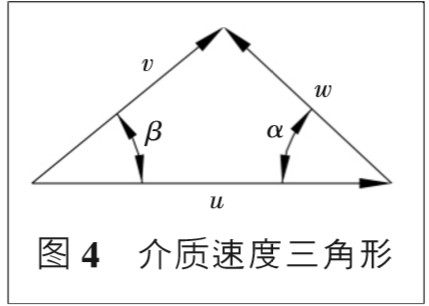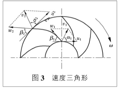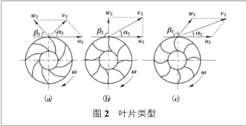 4.1 風(fēng)機(jī)葉片型式 目前離心風(fēng)機(jī)型式主要有三種,即:后彎式、徑向式 和前彎式,主要是依據(jù)出口安裝角 β2α 來確定。 4.2 安裝角與葉輪進(jìn)出口速度 圖 2 為葉輪內(nèi)介質(zhì)在出入口時速度分解圖,在葉輪 幾何尺寸、轉(zhuǎn)速 n 及煤氣靜態(tài)流速 v0 不變的情況下, u1、u2 為恒量。