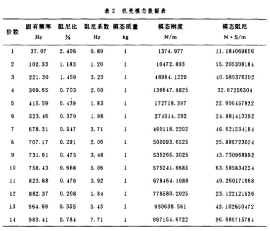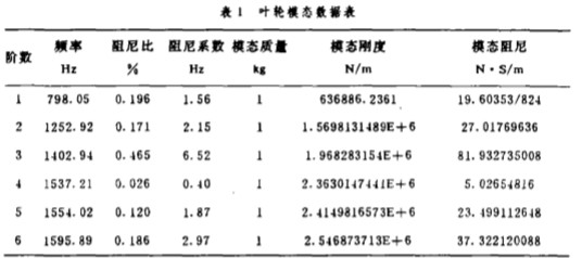 經(jīng) F盯 分析儀進(jìn) 行信號(hào)分析 , 得到 葉輪和機(jī) 殼的幅頻特性 曲線 , 再經(jīng)計(jì)算機(jī) 進(jìn)行 曲線擬 合 , 得到葉輪和機(jī)殼的 各階模態(tài)參數(shù) , 如 表 1 和 表 2 所 示.